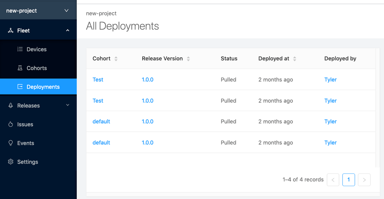 A new page in the "Fleet" let's you easily view your most recent deployments.