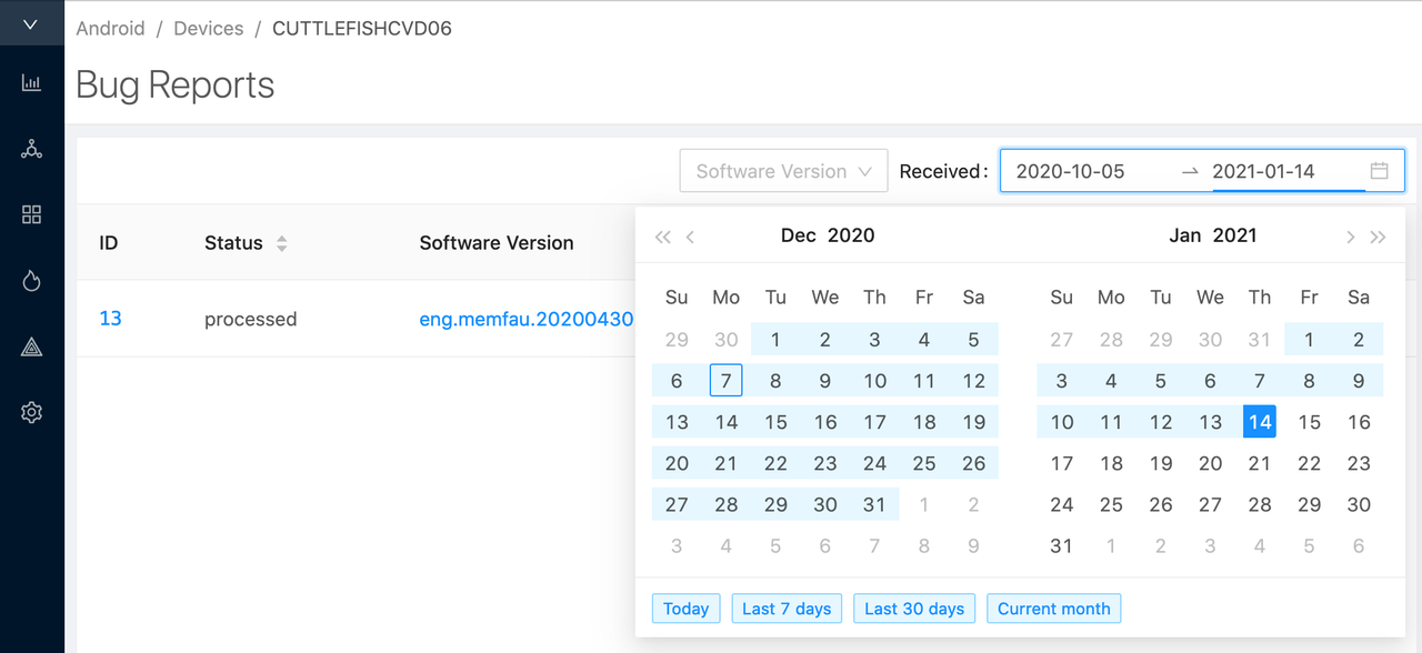 this page, click on a Device under Fleet and click the "All" button in the Bug