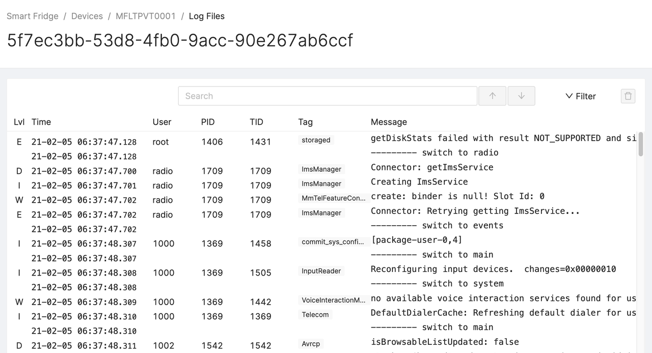 The Bort SDK can now send up individual log files from the device to Memfault, where we will host them and allow you to search them on a log-by-log basis.