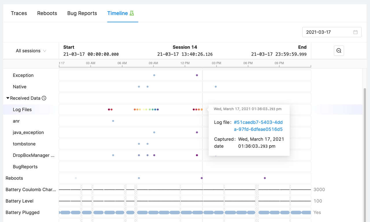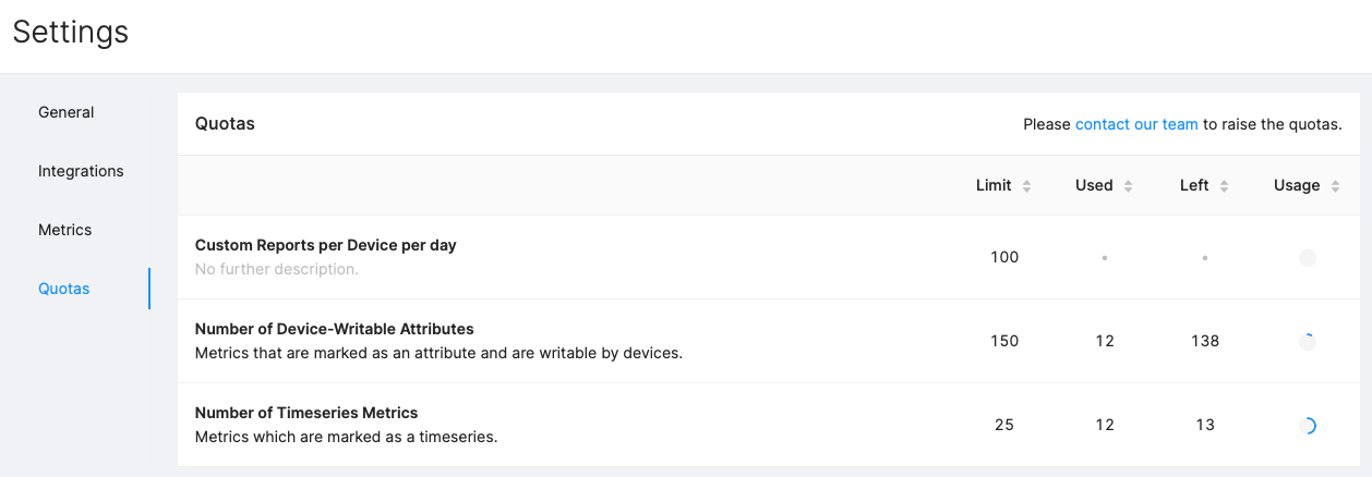 We added support for Custom Metrics so that devices can report product-specific numerical values, strings, and state transitions on regular intervals. Together with a growing set of built-in Metrics, this leads to a powerful combination of per-device debugging (e.g. correlation of CPU activity and battery voltage) and fleet-wide insights (e.g. "how many devices exceed 80% of their storage" or "What is the average battery discharge rate?"). The reported values contribute to the recently introduced Time-Series Metrics and Device Attributes.