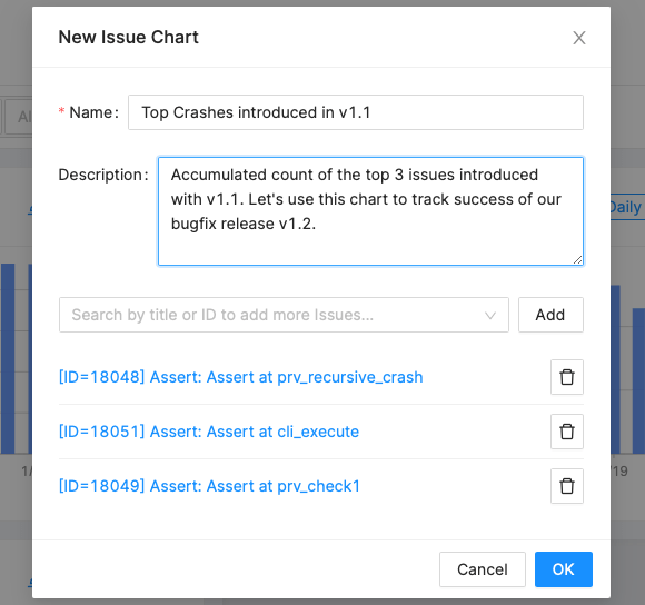 Dashboard changes to charts