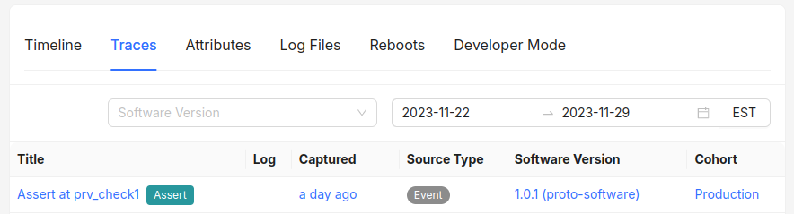 Note that Trace Events are marked in the UI, so you can distinguish them from Coredump Traces: