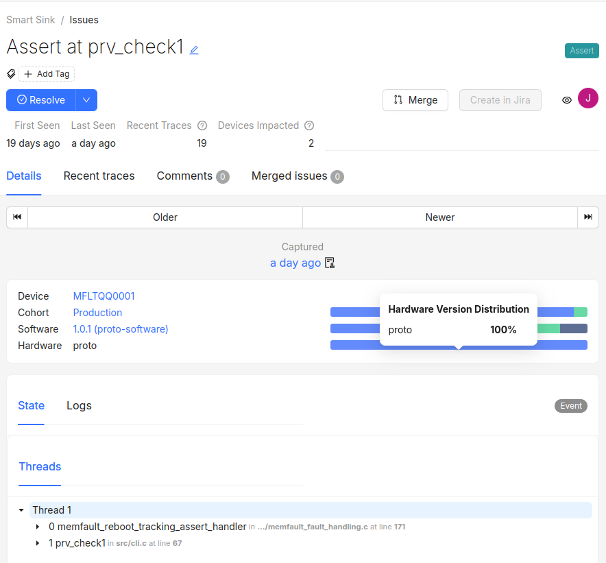 With these changes in place you should now see these two objects as part of the Globals & Statics display of the Memfault Issues → Coredump page.