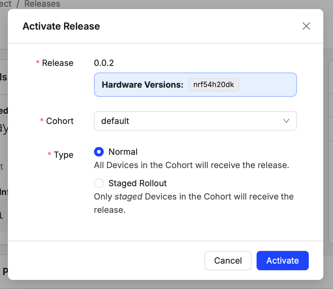 defaultfor the target Cohort, and aNormalrollout - Click Activate to activate the deployment!