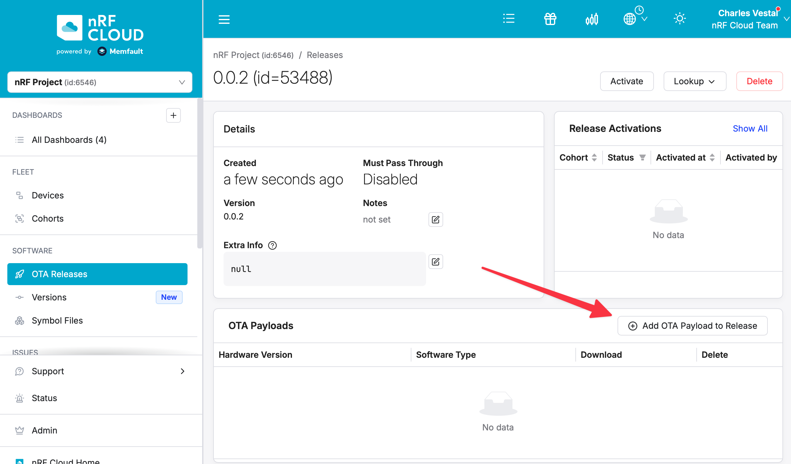 - In nRF Cloud, visit Software → Releases