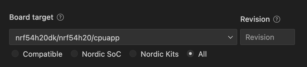 Choose your board identifier as the hardware type (i.e. nrf54h20dk), and