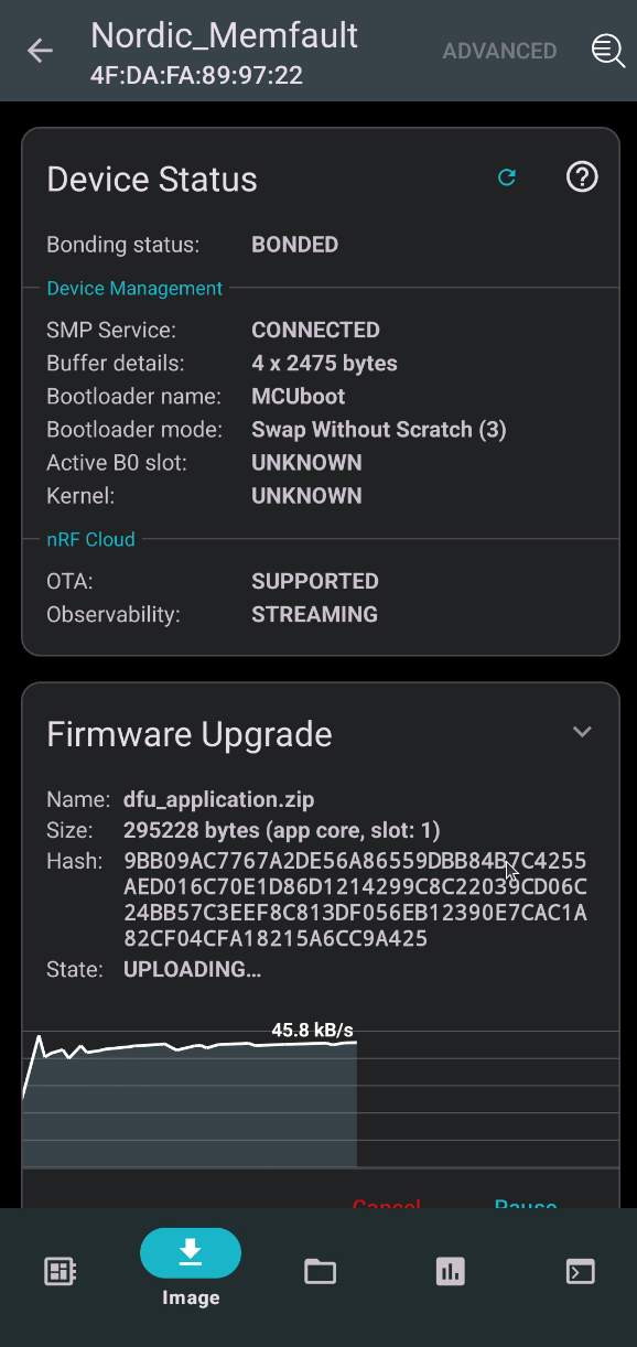 - Connect your Device to nRF Cloud powered by Memfault