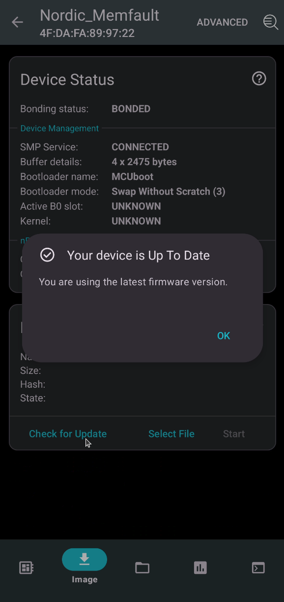 Device Manager mobile app Image tab showing Check for Updates