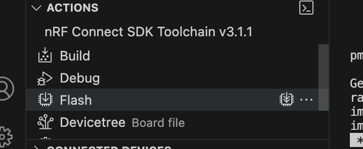 Next, build an updated binary for your firmware, by choosing the "Build" action from the nRF Connect extension.