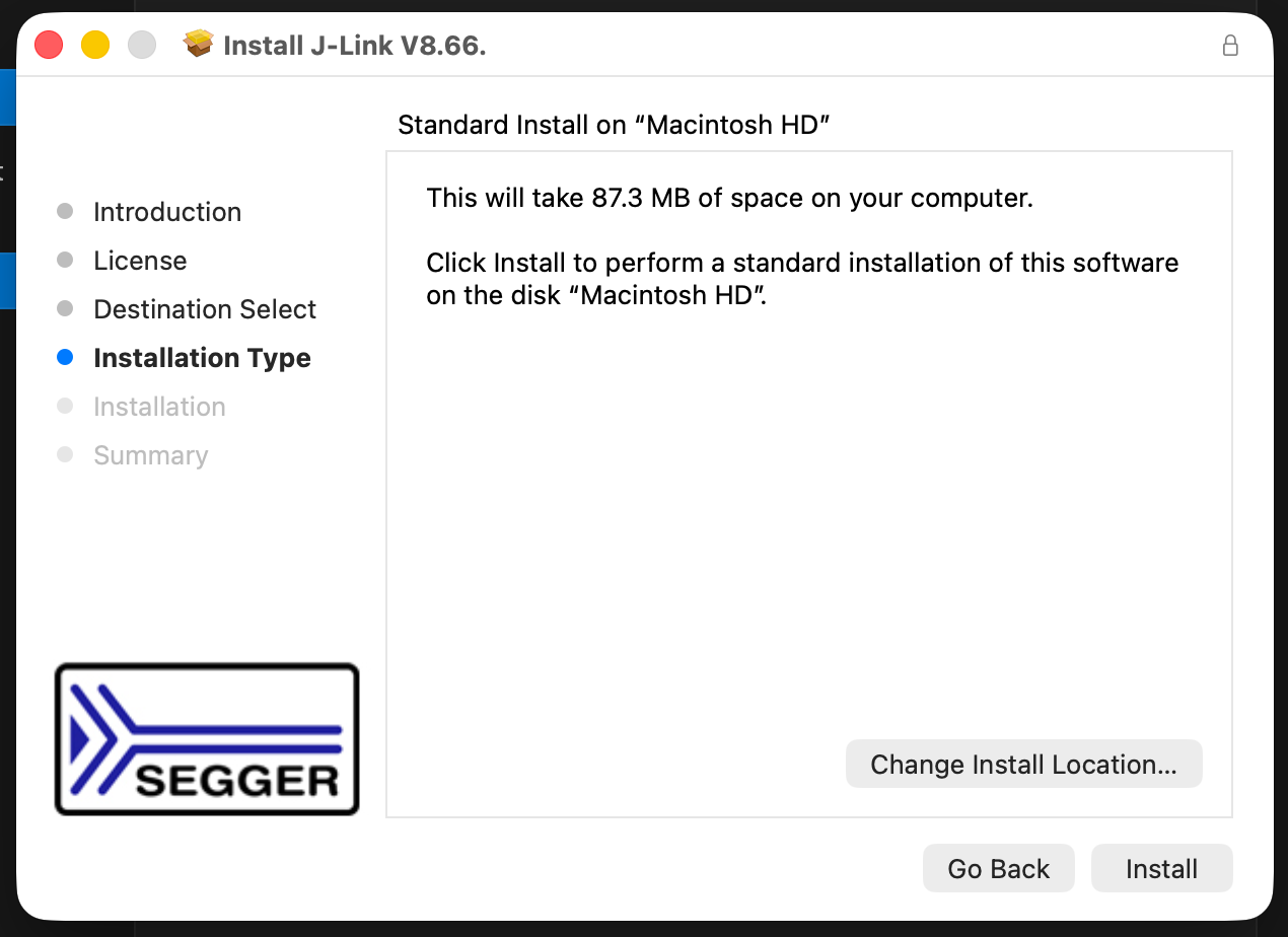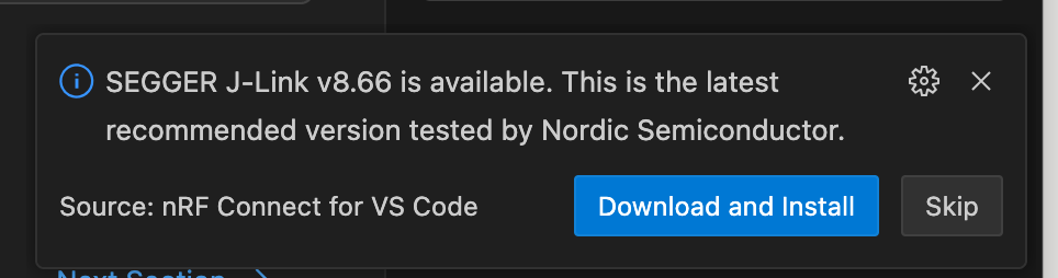 After installation, you may see a prompt to install a version of Segger, required for debugging. Click "Download and Install" and proceed through the J-Link installation wizard. If not, please install manually.