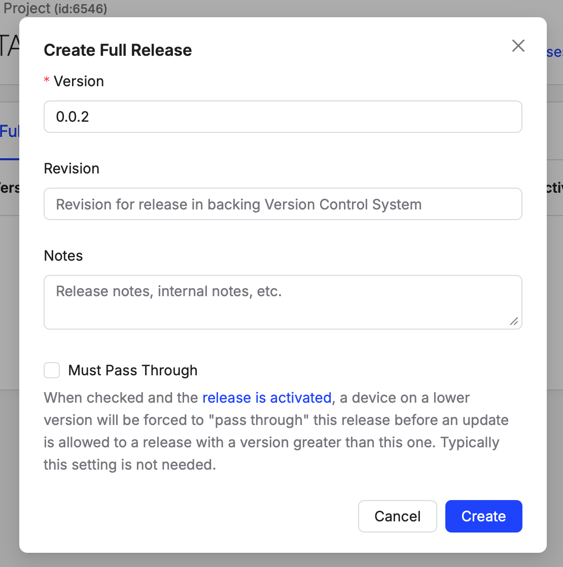 First, choose "OTA Release" from the sidebar and create a new Release,
