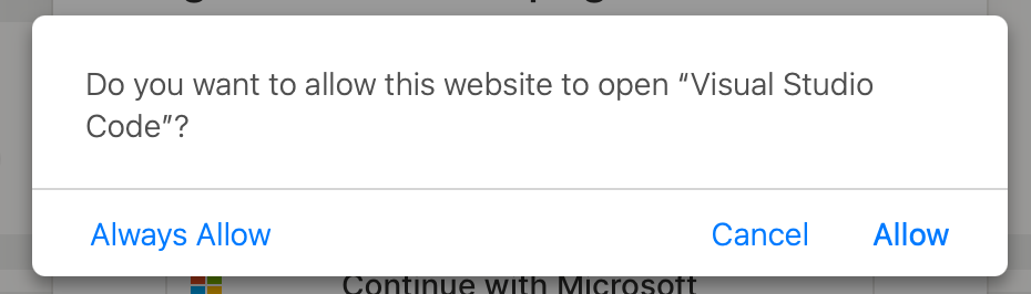 Click "Allow" to open in VS Code, then "Install Extension and Open URI" to install.