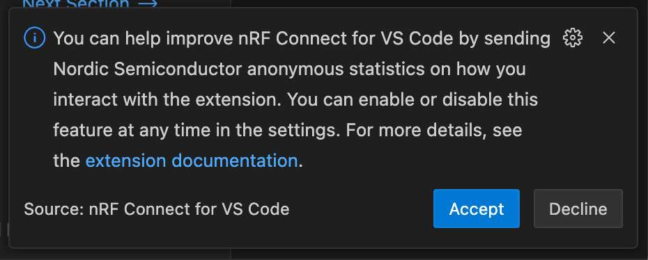 - You may choose to enable sending statistics to Nordic Semiconductor or not; this does not affect any of the functionality of the SDK.