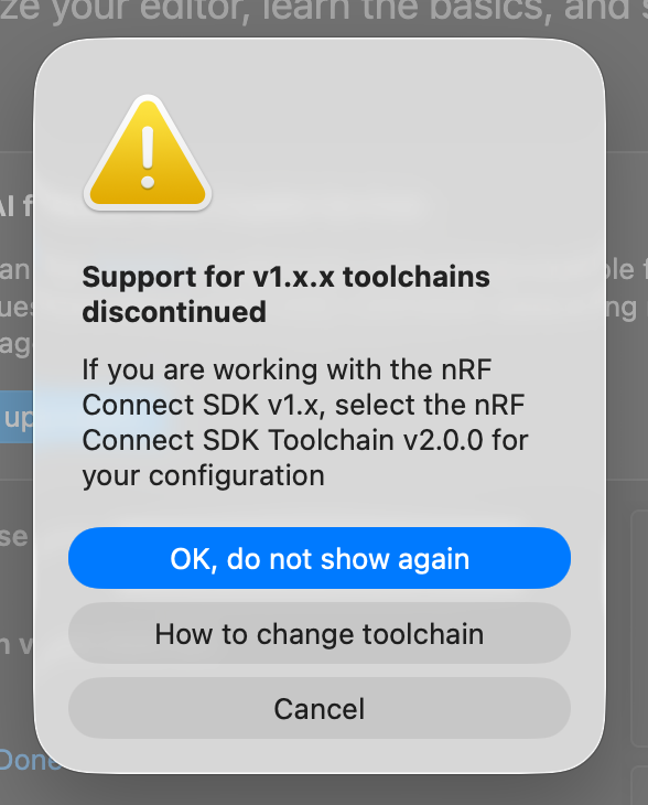 nRF Connect toolchain deprecation warning dialog