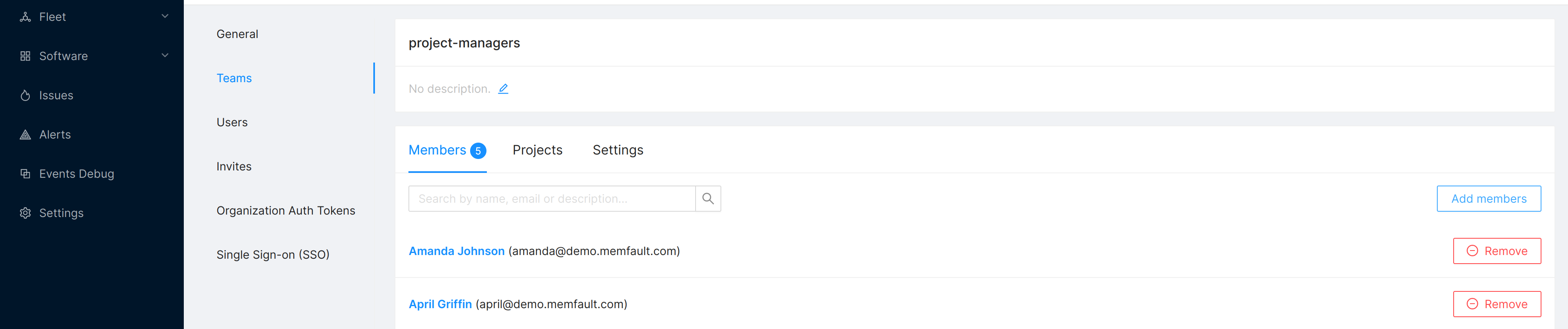 managersTeam - in the Members tab, add any new members you need