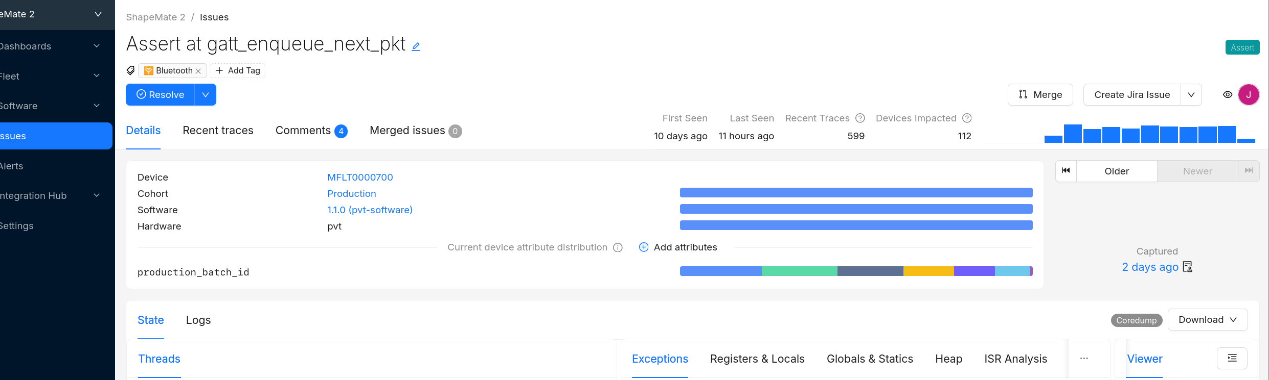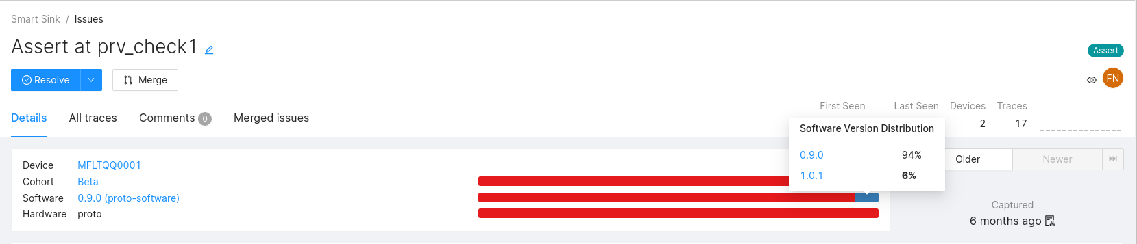 Memfault will continue to collect Traces of Resolved and Muted Issues. These traces will continue to populate Issue Charts in the Metrics Dashboard. Traces will also be available on the Device page under the Traces tab and on the Device Timeline.