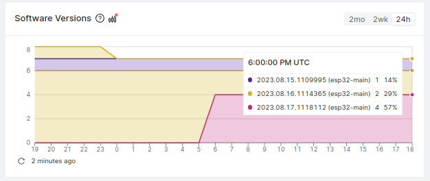 As part of your OTA management workflow, make sure to set up Metric and Issue Charts to monitor the health of your fleet. You can use Comparison Mode to see how devices in a different Cohort or in a newer Software Version are doing relative to other devices.