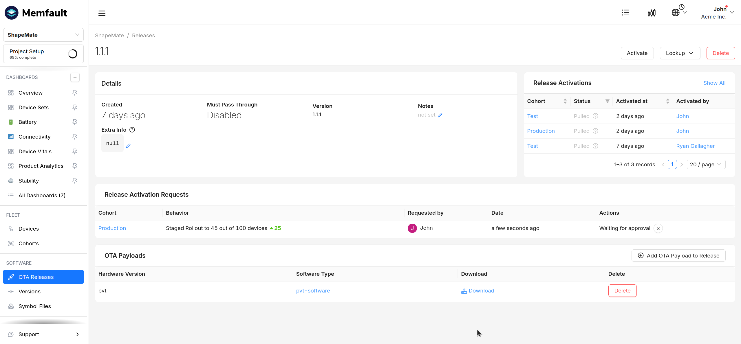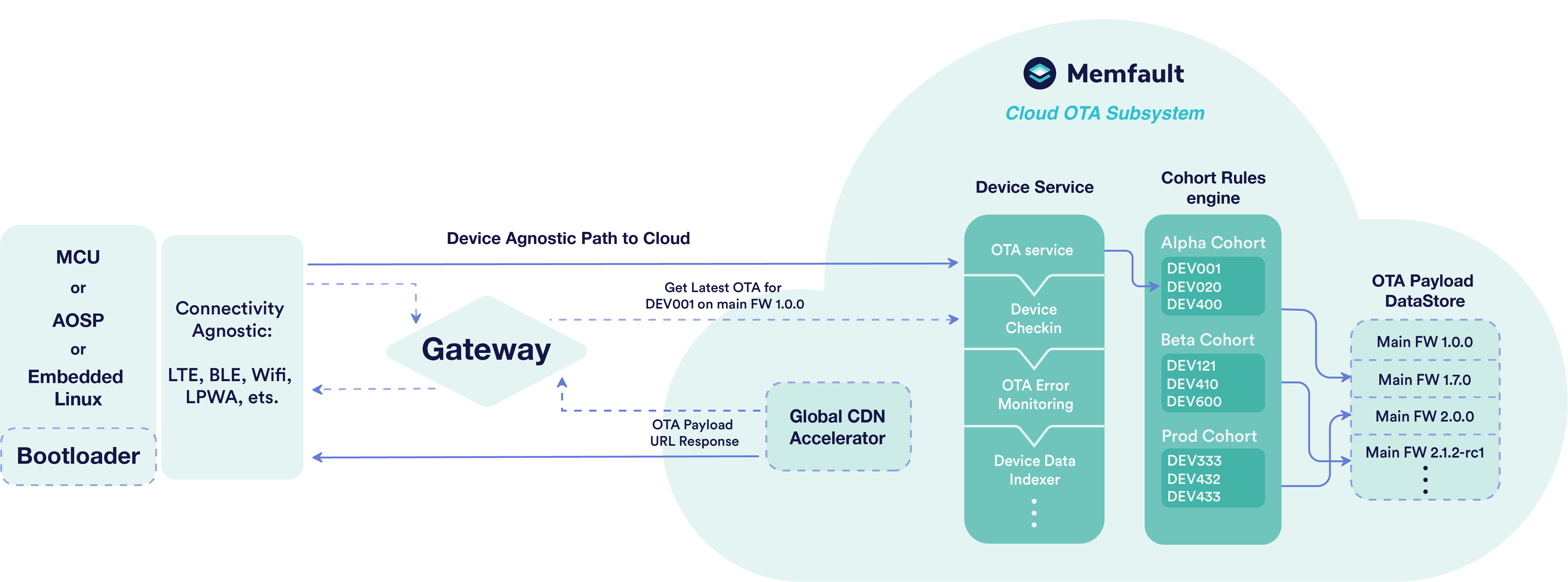 - Memfault users have different ways to configure which OTA payloads to distribute to which devices.