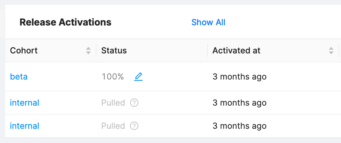 - Whether a Release is active for the Cohort (under the Release Activation column).